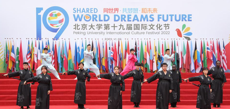 11月6日,北京大学第十九届国际文化节开幕。本届国际文化节主题为“同世界·共梦想·和未来”,通过丰富多彩的文化活动促进国际文化多元交流。在开幕式上,“燕园武韵”作为开幕式表演中第一个亮相的节目,以独具特色的中华武术文化意蕴征服了现场来宾和所有观众的心,用武术之美引领观众步入充满现代意蕴的中华武术殿堂。柔和缓慢、圆活连贯的太极拳,刚柔并济、整齐划一的兵道挥剑动作,动静之间彰显五千年的中华文化,力劈华山之劈、石破惊天之砍、苍龙探爪之斩、仙人点画之刺,劈砍斩刺、排队布阵,举手投足散发着自强不息的民族气概,赢得了在场观众阵阵喝彩,为大家带来美不胜收的视觉盛宴。