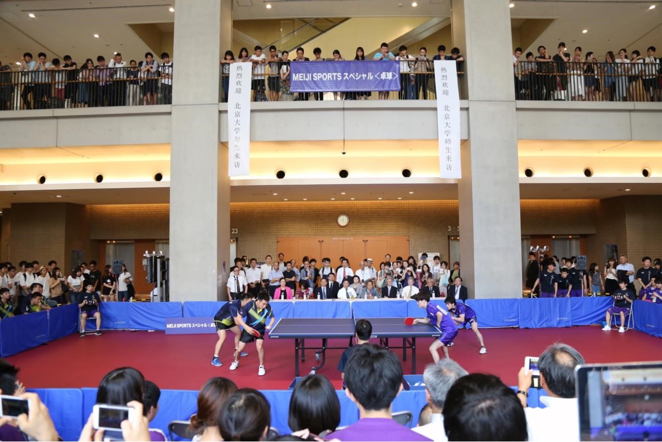 7月11日-7月16日,以北京大学副校长高松、体育教研部副主任萧文革、体育教研部副教授刘伟等领导以及6位学生一行,赴日参加由日本明治大学主办的乒乓球交流活动。明治大学细致、用心的接待和安排,也为本次交流活动的圆满奠定了基础。6名学生通过为期六天的交流活动,与明治大学学生互相交流、切磋球技,学到了很多科学训练方法和先进理念。
