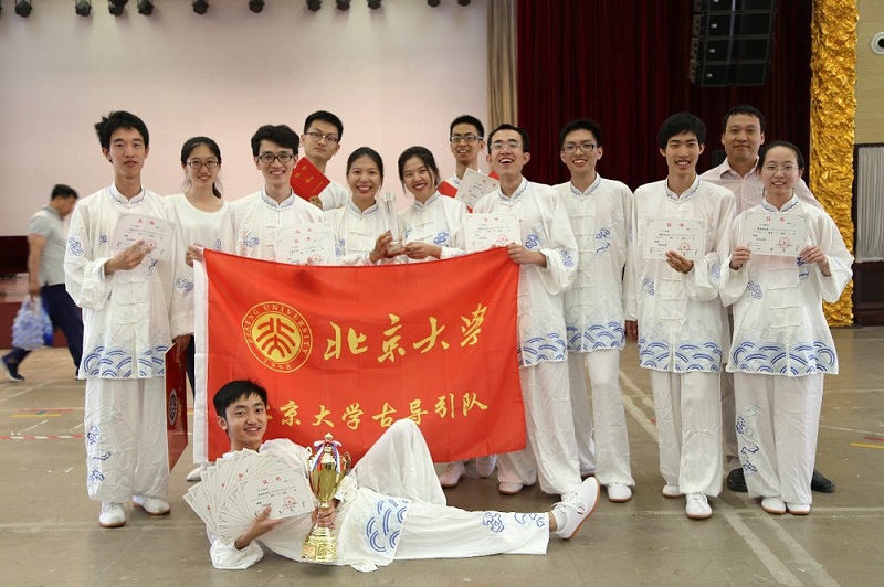 北京大学古导引队自2016年建队以来,在杜军明老师的指导和胡燕队长的带领下,各位队员利用课余时间,克服各种困难,积极参加训练,苦练基本功;在比赛中,队员们认真对待比赛,表现出北大人敢于担当、认真负责、一丝不苟的处事态度和优秀的组织、协调与团队合作能力。各位队员通过一年训练和比赛,不仅获得了奖杯、证书与友谊,而且身心也得到了陶冶和成长。希望今后有更多的北大学生,能够参与到这种可以持续终身的运动项目中来。