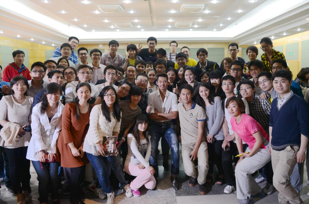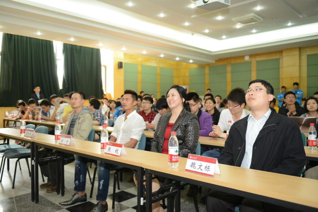 5月2日下午,五四体育中心人头攒动,热闹非凡,由体育教研部、校研究生会共同主办的“羽‘林’天下——北大学子见面会”在五四体育中心多功能厅举行。世界羽坛“大满贯”得主,北京奥运会、伦敦奥运会男单冠军林丹莅临燕园,与北大学子分享羽球体验,畅谈体育人生。体教部书记张锐、北京大学研究生会主席魏文栋,副主席任庆鹏等出席活动。见面会由校研会副主席张景瑜主持。