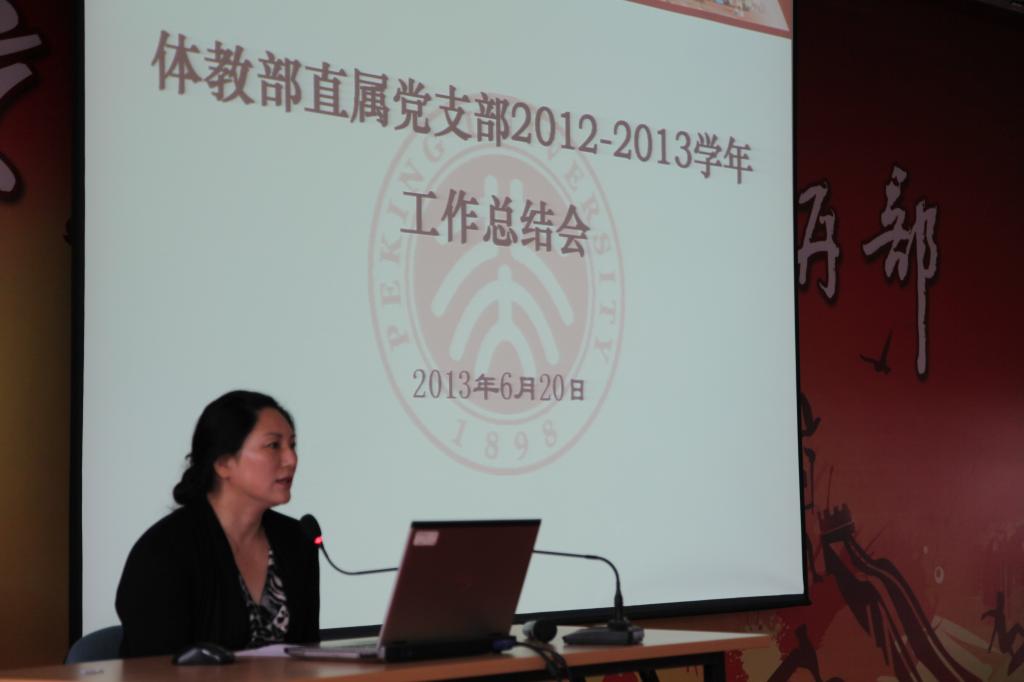 2013年6月24上午,体教部直属党支部2012-2013学年工作总结会暨体育部预备党员转正会议在五四体育中心举行。体教部的离退休党支部,在职教师党支部和研究生党支部参加了会议。会议由体教部书记张锐主持。
