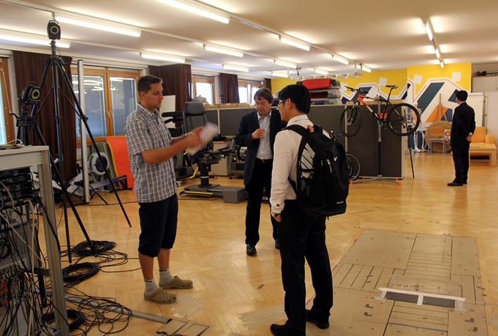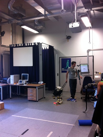 Baca教授和他的研究助理向我们介绍运动生物力学实验室的运动捕捉和分析系统 |