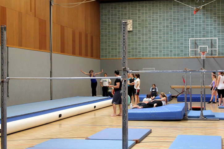 体育教育系的学生在考核体操技能,这些学生将来成为小学和中学的体育老师