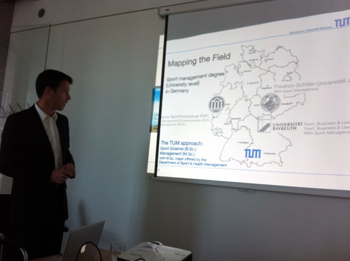 6月13日,郝主任一行又访问了慕尼黑工业大学运动与健康科学学院,该院院长兼运动心理系主任Prof. Dr. J. Beckmann,运动健康管理系主任Prof. Dr. J?rg K?nigstorfe,运动科学与计算机应用系主任Prof. Dr. Martin Lames, 以及运动科学系主任Prof. Dr. Joachim Hermsd?rfer的热情接待。在宾主双方主任各自介绍过院系概况之后,几位教授对各自领域的研究内容进行了详细介绍,茶歇之后Beckmann教授带领郝主任一行参观了运动心理学、运动生理学、运动生物力学及运动与计算机信息处理实验室,在加拿大籍博士后THOMAS的带领下,郝主任一行还参观了慕尼黑大学紧领慕尼黑奥林匹克公园的体育场管和设施。最后宾主双方就2009年签署的“北京大学和慕尼黑工业大学合作伙伴协议”的框架下讨论两院系的教师和学生交换的政策和方案。与维也纳大学不同,两校之间互不收取交换学生的学费,且虽然支持教师的互访,但不提供访问学者停留期间的生活费用。会后慕尼黑工业大学运动与健康学院向郝主任递交了两院系的合作意愿备忘录,期望两院系的合作在将来能有实质性进展。