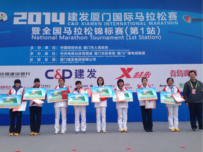 2014年1月2日,全国大学生马拉松邀请赛在福建厦门国际会展中心鸣枪开赛,本次比赛中共有来自全国25所985高校的运动员参加,各代表队运动员按照完成全程比赛获取的名次计算团体总分。最终北京大学运动员以女子组第1名、第2名,男子组第4名、第7名,获得男女马拉松(42.195公里)团体冠军,北京理工大学、清华大学分列第二、第三名。