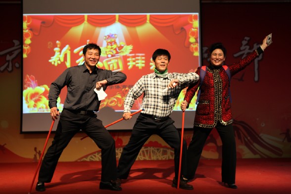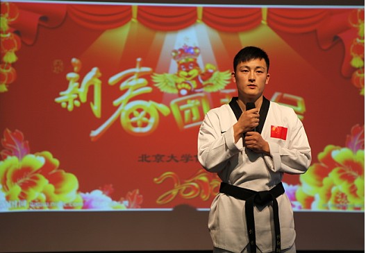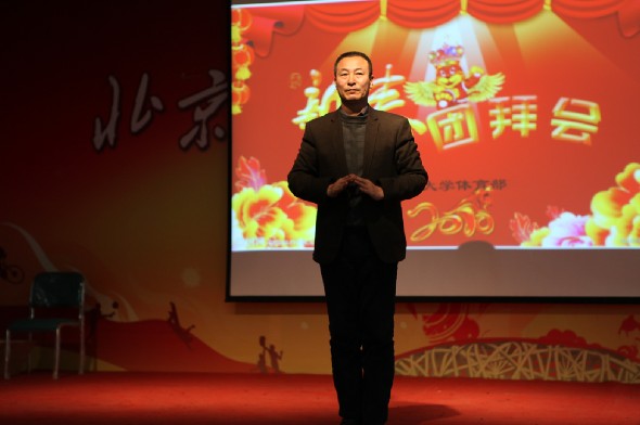 随后,团拜会的演出正式开始,此次演出由体育部钱永健老师和体育部2013级研究生李璐玚主持。