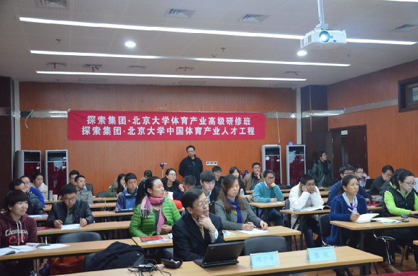 经北京大学继续教育部批准,在北京大学体育教研部主办,北京大学中国体育产业研究中心承办,江西探索集团有限公司的大力支持下,探索集团·北京大学体育产业高级研修班暨探索集团·北京大学中国体育产业人才工程于2013年11月22日上午9点30分在北京大学邱德拔体育馆开课。