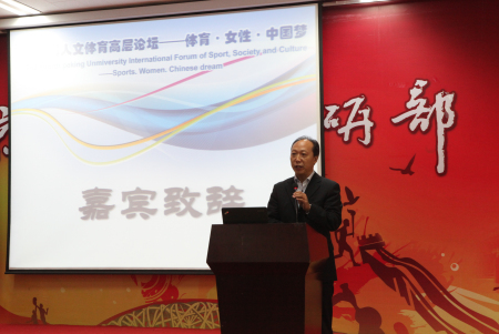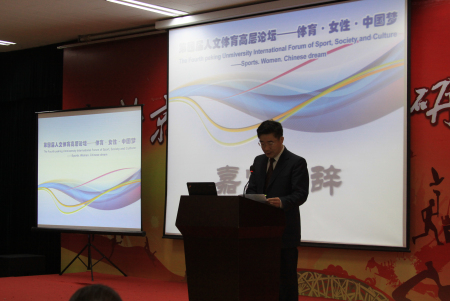开幕式上,北京大学常务副校长刘伟教授致欢迎词。刘校长首先代表北京大学向出席这次论坛的各位领导与嘉宾致以热烈的欢迎和诚挚的谢意。对北大人文体育基地成立十年来取得的成绩,刘校长予以充分肯定和支持,他认为,基地的建立和发展为推动国内体育领域的学术交流与合作作出了重要的贡献。谈及此次第四届人文体育高层论坛举办的意义,刘校长表示,体育是提升全民身体健康素质的重要媒介,是中国梦实现的有效途径,希望与会学者通过这次论坛交流思想、凝聚共识、共话发展,同心筑梦,让体育发展、女性成长与中国梦的实现携手并进。