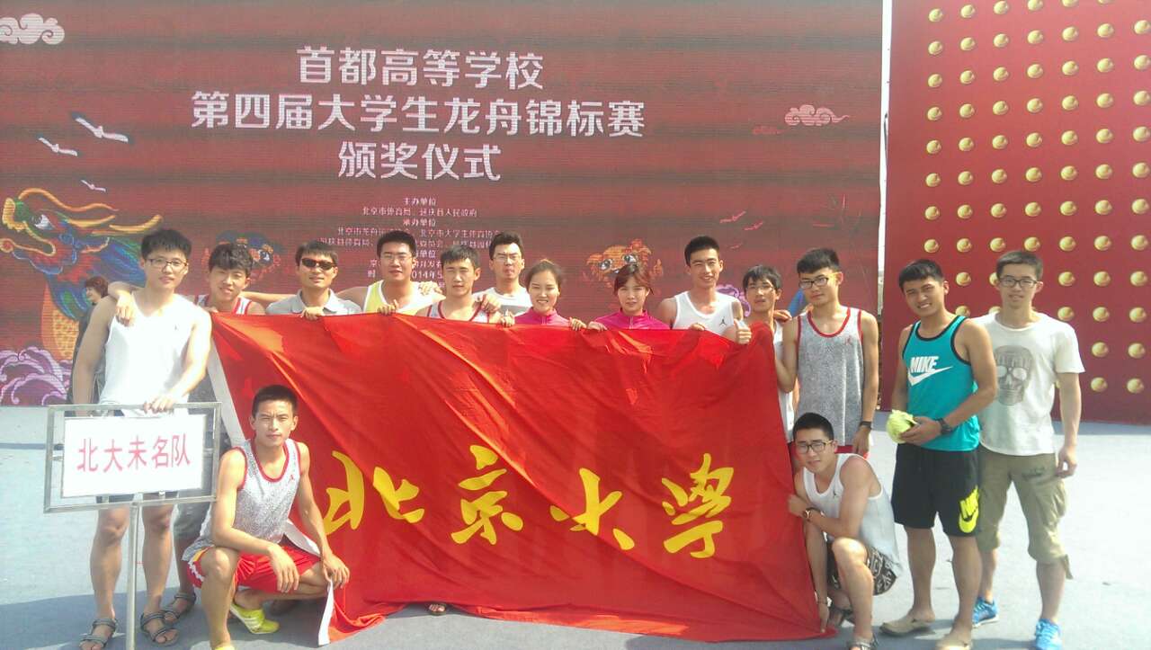 5月30日-6月2日在北京延庆和北京平谷举行的首都高校大学生龙舟锦标赛中,北京大学代表队在训练少的情况下,以赛代练,取得优异成绩,充分展现了北大的拼搏和人文精神。在延庆的大学生龙舟锦标赛的27个参赛队伍中,北大取得了第八名的好成绩,并以2分24秒取得龙舟400米竞速北大最好成绩;在平谷举行的第二站的500米直道竞速中,北大代表队以3分13秒夺得第7名的好成绩。