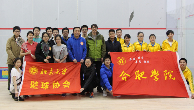 2014年12月13日晚,北京大学壁球协会与合肥学院壁球队在邱德拔体育馆壁球厅举行了一场促进友谊、增进交流的壁球交流赛。北京大学壁球协会指导老师何仲恺教授和合肥学院领队胡世琪教授全程参与并指导了交流活动,交流活动取得圆满成功。