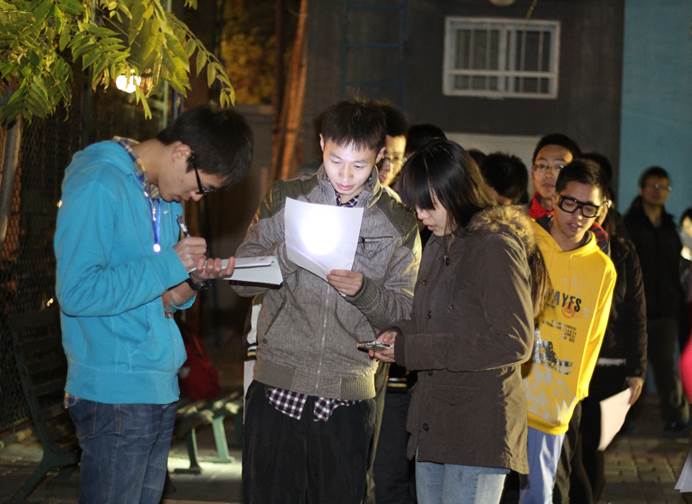 11月11日晚,由北京大学体育教研部主办、北京大学定向运动协会承办的“忍者之路”夜间定向赛在未名湖附近顺利举行。此次夜间定向系北京大学体育教研部本学期推出的体育时间之“夜锻炼”系列群体健身活动之一,本活动以火影忍者动漫为主题,吸引了许多同学的目光,共有一百余人参与了此次活动。