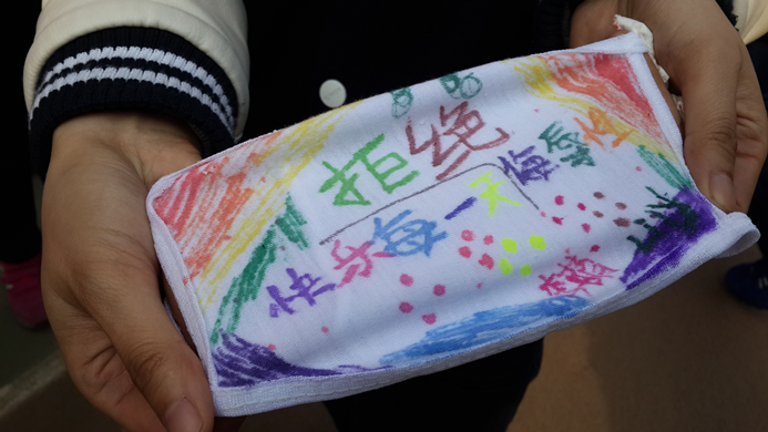 空竹表演拉开了本次运动会的序幕,接下来,有趣的互动融合活动则让老师和研究生们更加走近了小朋友们的内心。合作运球、往返障碍接力、拔河等项目让大朋友们和小朋友们的欢声笑语响彻整个校园。最后,北大的老师学生还与孩子们一起在主办方准备好的白色口罩上用彩笔写下了本次活动的主题"抵制侮辱性语言 争做明文使者",北大师生向小朋友们赠送了代表勇气的紫手环,鼓励孩子们热爱生活,珍惜光阴。