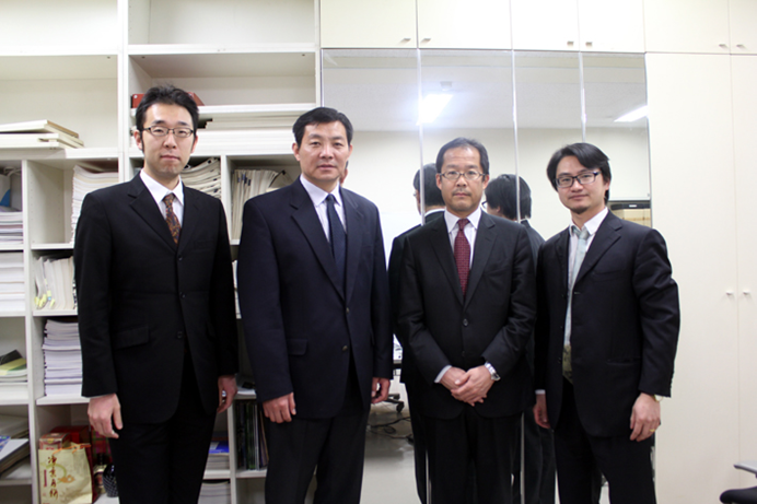 与东京大学教育学院综合教育系主任山本义春教授(右二)和森田博士(左一)合影