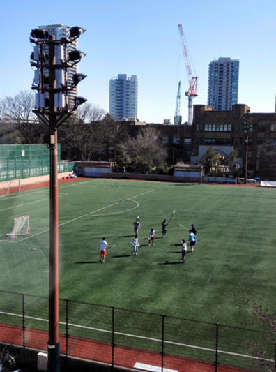 Hongo校区运动场。棒网球社团正在练习。操场北侧就是著名的东大医学院及附属医院,再往北,就是上野公园。操场西侧是小型体育馆,在操场的地下,包括一个标准游泳池及手球场及篮球场。因为正在装修未能造访。这些就是Hongo校区的所有体育设施。 |