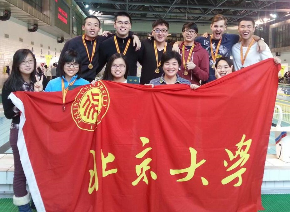 12月13日,首都高校游泳锦标赛在北京外国语大学举行。北京大学游泳队男女共十名队员由余潜老师领队参加了比赛。