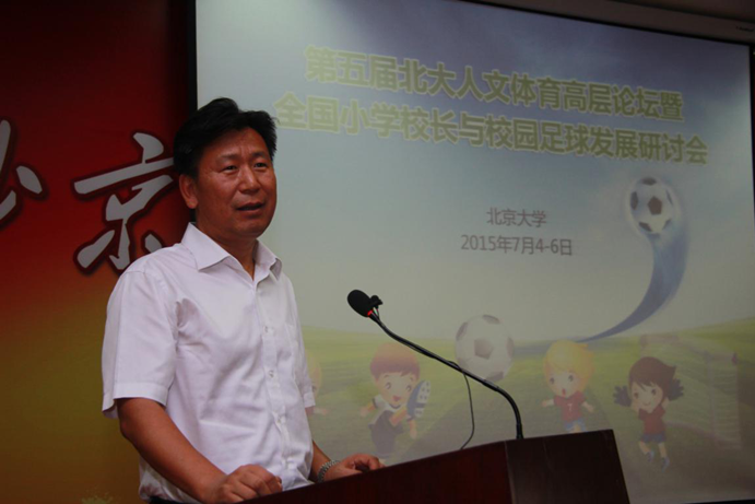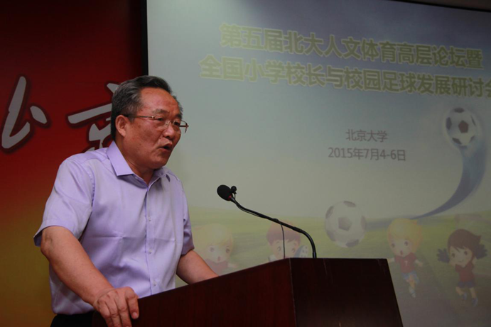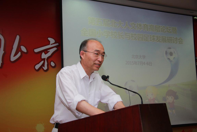 自党的十八大以来,作为国家层面改革中的重要部分,足球受到了高度重视。在教育部体育卫生与艺术教育司和国家体育总局青少年体育司、中国足球协会的大力支持下,7月5日下午,由北京大学、中国宋庆龄基金会联合主办,北大人文体育研究基地、北京大学体育部承办,北京师范大学校园足球研究发展中心、首都体育学院校园足球发展促进研究所、北京大学中国足球发展研究中心协办的第五届北大人文体育高层论坛暨全国小学校长与校园足球改革发展研讨会在北京大学五四体育中心拉开帷幕。