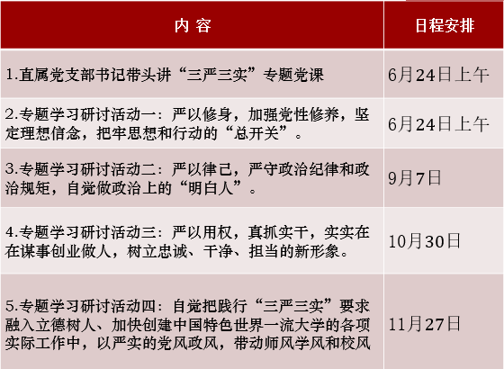 学校要求大家充分认识开展“三严三实”专题教育的重要意义,准确把握总体要求,注意做到“四个坚持”,切实开展好“三严三实”专题教育,并加强开展专题教育的组织领导。根据学校开展“三严三实”专题教育的工作部署,体育教研部直属党支部对开展专题教育做了具体安排: