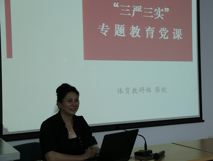 张锐书记为全体党员生动解读了“三严三实”的重大意义、深刻内涵,传达了北京大学开展“三严三实”专题教育活动的部署,并部署体育教研部开展“三严三实”专题教育活动的具体安排。