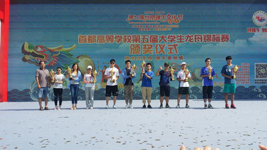 黄铭宥(右四)代表北大男子组龙舟队领奖