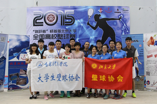 为搭建中国大学生壁球交流平台,促进壁球在全国高校间的交流与推广,北京大学勇于承担推广壁球运动的历史使命,于2015.6.5~6.7在北京大学邱德拔体育馆壁球厅成功举办了北京大学首届“跳跃者”杯全国高校壁球赛。