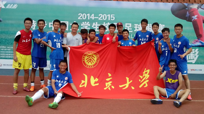 盛夏六月,湖北武汉,2014-2015特步中国大学生校园足球联赛校园组全国区决赛拉开战幕。6月23日至30日,8天,6个比赛日,南北区四强齐聚华中科技大学,角逐全国赛区前八排名。北京大学男足二队,在领队李杰、教练闵东旭和裴恩才指导的带领下,以北区第一参加比赛,最终获得全国赛区第六名。