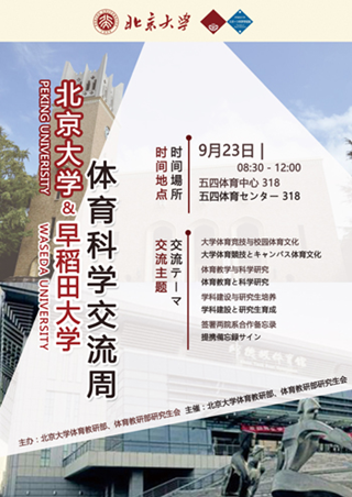9月22日-24日,早稻田大学体育科学学院院长Tomozoe教授、主管外事副院长Uchida教授,教务副院长Yoshinaga以及体育竞技中心Iso教授一行四人参加了我部主办的北京大学-早稻田大学体育科学交流周活动。