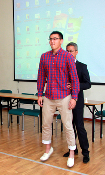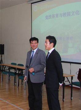 北大郝光安教授(左)介绍北京大学的校园文化和竞技运动