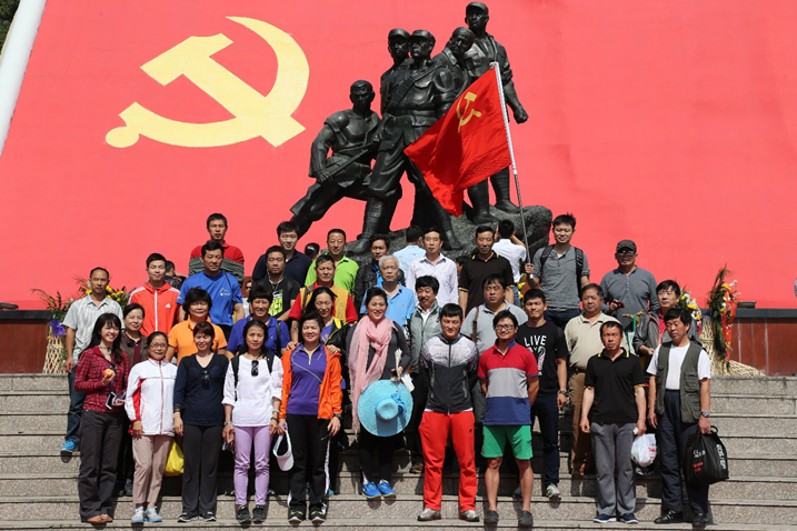 接下来,体教部党员及教职工来到河北省易县狼牙山。1941年9月25日,面对步步逼近的日军,八路军五勇士马宝玉、葛振林、宋学义、胡德林、胡福才在狼牙山用生命和鲜血谱写出一首气吞山河的壮丽诗篇。在战斗中他们临危不惧,英勇阻击,子弹打光后,用石块还击,他们宁死不屈,毁掉枪支,义无反顾地纵身跳下数十丈深的悬崖。马宝玉、胡德林、胡福才壮烈殉国;葛振林、宋学义被山腰的树枝挂住,幸免于难。5位战士被人民群众誉为“狼牙山五勇士”。