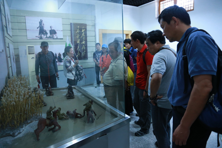 体教部党员及教职工来到位于白洋淀文化苑内的爱国主义教育基地雁翎队纪念馆,馆内有260多幅珍贵历史图片和100多件实物,是抗日战争时期军民浴血奋战抗击敌人的见证。在白洋淀人民长期抗战过程中,逐渐形成了敢于斗争、机智灵活的雁翎精神,体现了中华民族的民族性格和民族气节。作家徐光耀撰写的《小兵张嘎》就取材于“雁翎队”。
