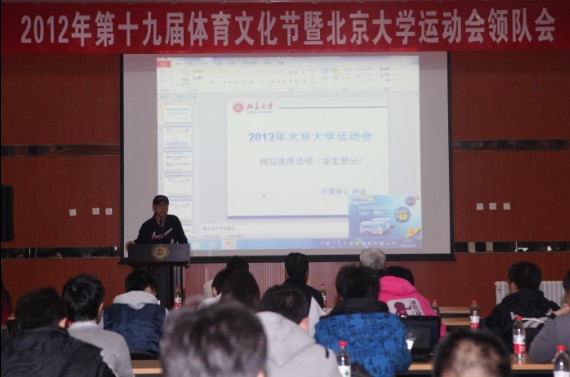 3月16日下午,北京大学第十九届体育文化节暨2012年运动会学生领队会在邱德拔体育馆举行。体育部主任郝光安、校团委副书记杨俊峰、计算中心副主任丁万东、体育部副主任刘铮以及相关部门的负责人和老师、学生会负责人、各院系领队,承办北大杯的社团负责人等共计70余人参加了会议。会议由体育部群体教研室主任钱俊伟主持。