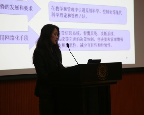 随后,董进霞教授用风趣幽默的语言主持了我部师生的报告会。萧文革老师,赫忠慧老师,从自己的切身体会出发分别就教学管理,信息化管理这两个不同视角,畅谈了自己工作中遇到的问题及成功经验,与在座的同仁分享。同时,其他老师报告的内容有赛艇运动员运动技能监控研究,也有关注大学生体育锻炼影响因素和学生体质标准的中日比较的分析,更有关注弱势群体的老年人体育锻炼和社会武术发展模式的研究。让人欣喜的是,研究生一年级的两名同学,陆地和廖倩雯也分别就网球运动员的培养模式和赛事营销的角度和大家分享了她们自己独特的观点和体会。