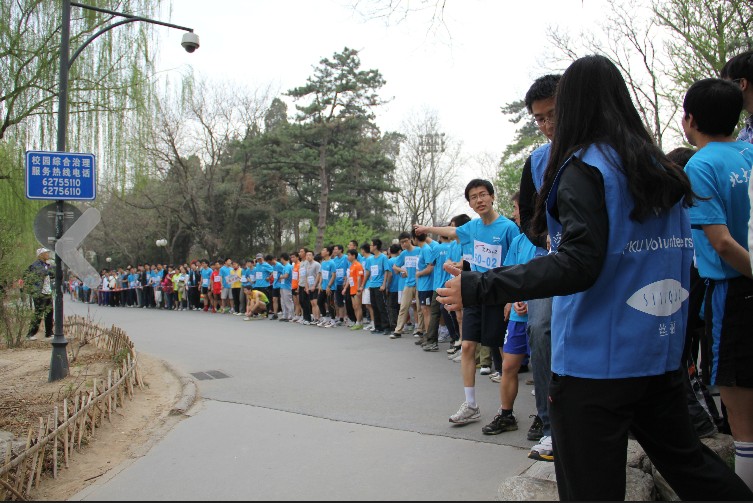 北京大学5+2半程马拉松接力赛是北京大学跑步爱好者协会每年春季的传统活动。每位参赛运动员绕未名湖3圈,共同完成21圈,总计21公里的半程马拉松,因要求5个男生2个女生自由组队参加,故名为“5+2”。