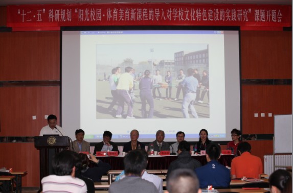 4月27日下午,中国教育学会“十二五”科研规划课题:“阳光校园体育美育新课程的导入对学校文化特色建设的实践研究”开题会在北京大学邱德拔体育馆多功能厅隆重举行,曲宗湖司长、刘海元教授等多位领导和来自全国各地教学第一线的教师近100人参加了此次活动。会议由课题秘书长王建主持,钱永健、郝朝阳等多位身处教学第一线的教师积极发言,介绍多年来关于阳光体育方面的教学经验和研究成果。
