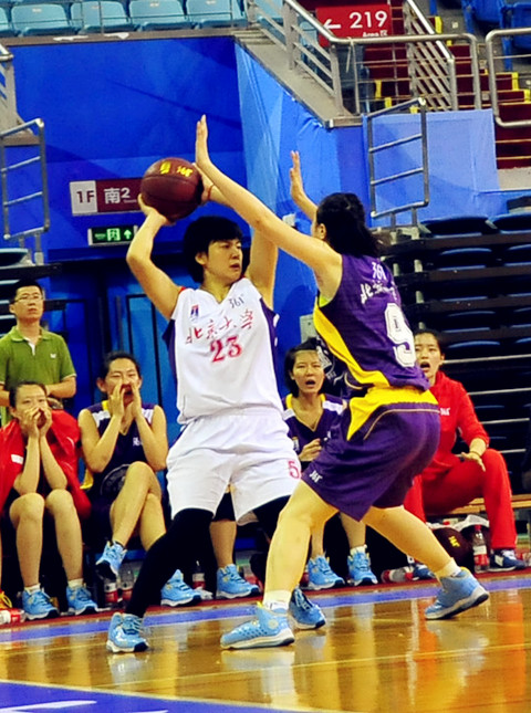 比赛开始,北大女篮派上了由花琳、胡译丹、王丽丽、蒋通、朱政敏组成的新老结合的首发阵容。依靠着内线的有力牵制和王丽丽在外线的里突外投,北大女篮一开场就发挥出色,以11:0开局。首节战罢,北大女篮18:6领先。第二节开始,北师大女篮尽遣主力,由国手邵婷、老将龚园和悍将吴思旸拉开了反击序幕,而北大女篮受到内线犯规的集中困扰。但17号陈纤雨发挥出色,个人单节砍下的10分,稳定了优势。半场结束,北大女篮的领先优势被缩小到6分。