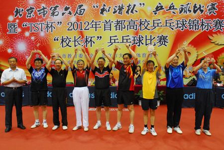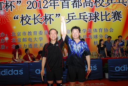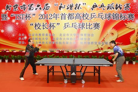 5月19日,由北京市教委和北京市大学生体育协会共同主办的第八届北京市“校长杯”乒乓球比赛在北京邮电大学体育馆隆重举行。本次比赛设置了男子单打和女子单打两个项目,共有来自28个高校的57位校领导参加,我校医学部主任、全国人大常委会副委员长韩启德和刘伟副校长参赛。