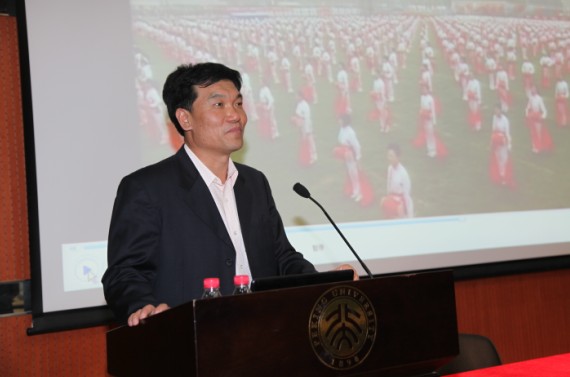 朱善璐书记首先向体育部各位老师表示敬意和问候,感谢老师们及体育部为北大师生健康付出的辛劳汗水。在介绍了北大的历史沿革及面临的任务、形势之后,朱善璐指出,北京大学的发展进入到了第三个五十年,要实现时代跨越发展,代表国家冲击世界一流大学,关键要有文化、有灵魂、有精神;毛泽东同志曾提出“文明其精神,野蛮其体魄”的人才培养观念,北大坚持以教书育人为第一任务,体育教育不只是锻炼身体,更是在对人自身进行调整,因此体育工作的进一步推进在北京大学创建一流大学的过程中具有重要地位。