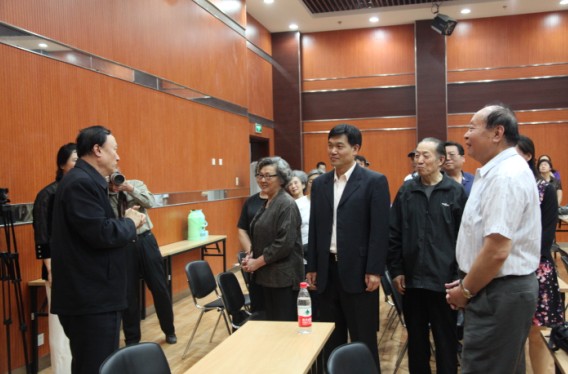 随后,朱善璐看望了原北京大学女子体操队教练喜勋等几位体育部的老教授,特别对当年本科时候的体育老师赵振绵表达了深深的感激之情,紧紧握着老教师们的手,对北大学子多年来的悉心培养、对体育事业做出的贡献表示感谢,并号召在场中青年教师向几位老教授学习,自觉加强锻炼,保持体魄健康。