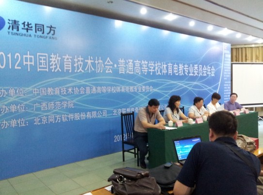2012年6月6日至9日,中国教育技术协会体育专委会2012年年会在广西南宁体育大厦举行。本次会议由广西师范学院承办,有来自北京大学、清华大学、北京体育大学、武汉体育学院、西北工业大学、西安交通大学、哈尔滨工业大学等23所院校的62名高校教师参会。共收到21门课件和52篇教育技术论文,是历届年会中数量最多、质量最高的一次。