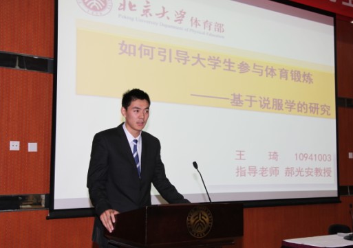 王沂淳同学《北京大学“90后”大学生体育生活方式现状及其成因研究》,针对北京大学本科在校生体育生活方式的行为主体、行为条件、稳定特征、影响因素等进行分析,得出影响北京大学本科生体育生活方式最重要的因素是体育价值观念,其次在体育教师、社团参与、家庭教育、经济成本及时间成本等。在每位答辩人陈述后,答辩委员进行了针对性的提问并对存在的缺陷与不足提出修改意见。