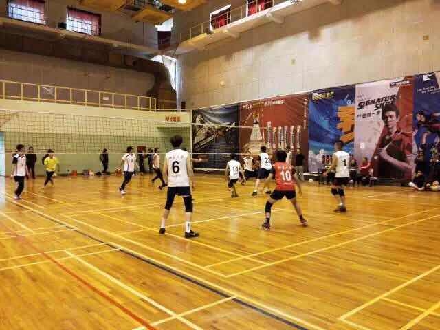 在一个多小时的车程后,教练黄老师带着男排队员和部分观众来到了比赛场地,经过简单热身后,比赛正式开始。