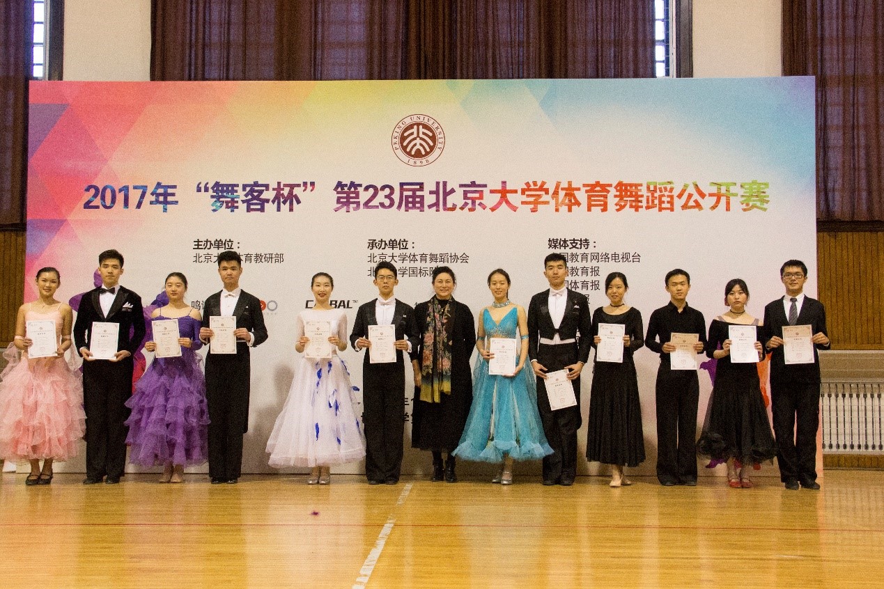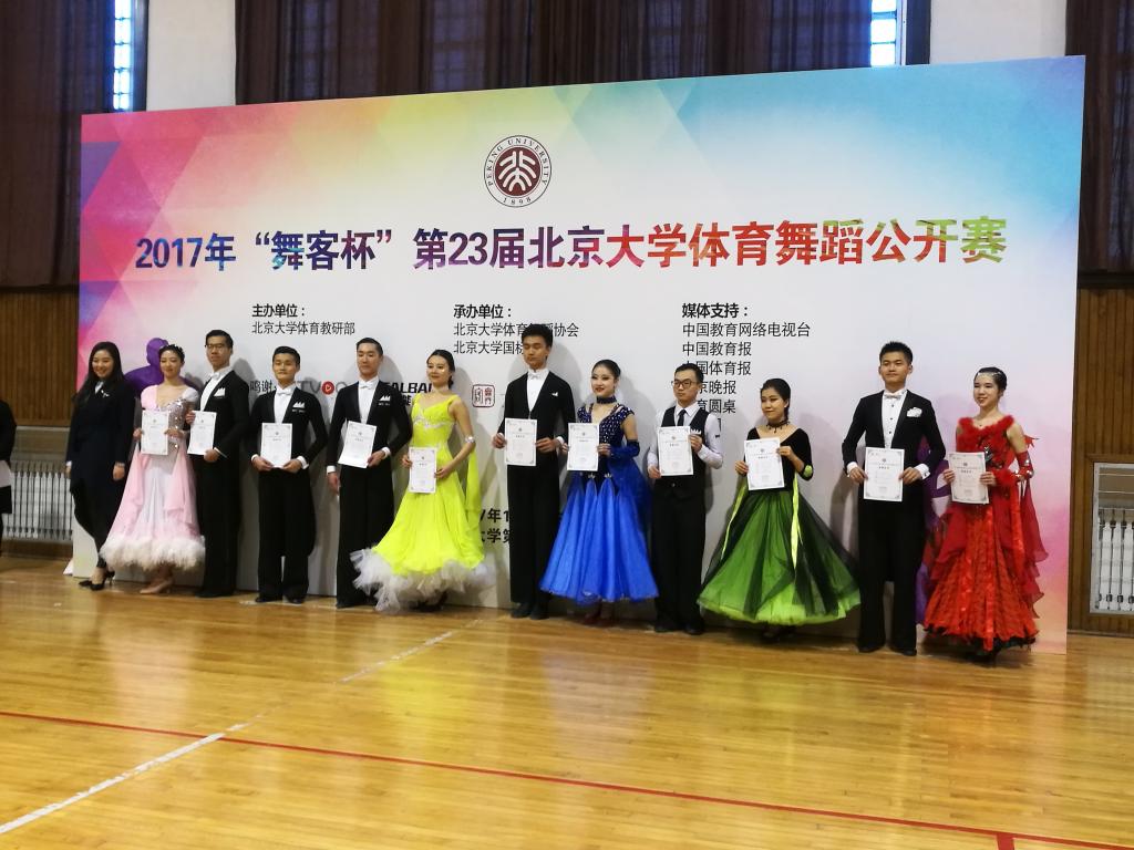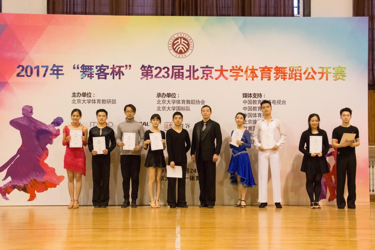 12月24日,2017年“舞客杯”第23届北京大学体育舞蹈公开赛在北京大学第一体育馆举行。来自北大体育舞蹈必修课程班、北大国标队、清华大学、北京体育大学、首都体育学院、北京交通大学、北京印刷学院、中央财经大学等21个单位的近300名选手参与31个组别与项目角逐。北京大学体育教研部主任李宁致辞,并对赛事的发起背景,以及教学与课外体育活动的结合,培训与比赛的结合模式表示了充分的肯定,并希望将本模式继续推广,并向支持这项赛事的朋友们表示感谢,体育教研部书记张锐教授也亲临现场给获奖选手颁奖。