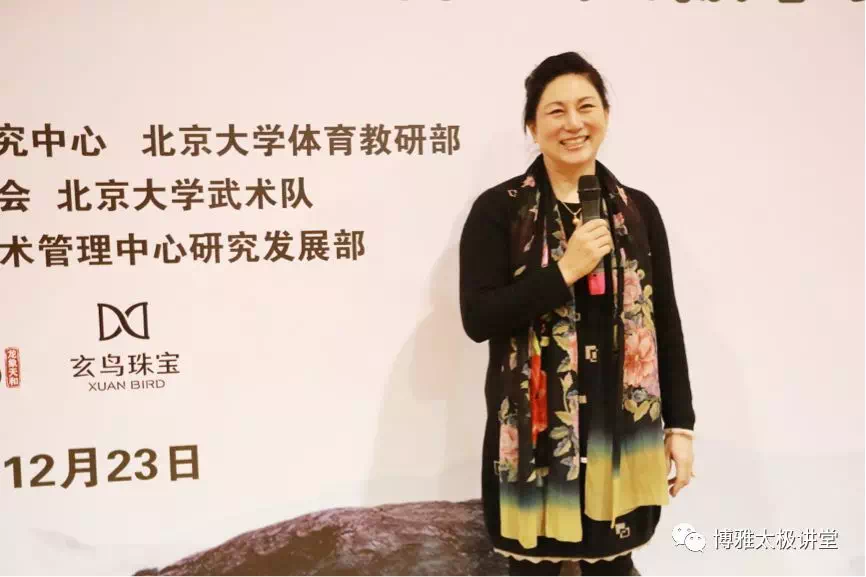 北京大学武术研究中心主任王东敏博士在致辞中提到,坚持习练太极拳有益于人们的身心健康,它在纤维肌痛、帕金森、心脏病等疾病有着独特的预防、康复治疗作用,目前太极拳的临床应用价值得到了医学界的广泛关注,相关的研究成果在《新英格兰医学杂志》、柳叶刀等杂志上刊登。北京大学武术研究中心也正在与多家医院合作进行太极拳运动处方与慢性病、关节病的健康管理等研究,并将研究成果落地于养老机构和社区。中心也将继续为北大的师生提供太极拳健身指导,健康筛查与评估、制定运动处方、服务北大师生健康。