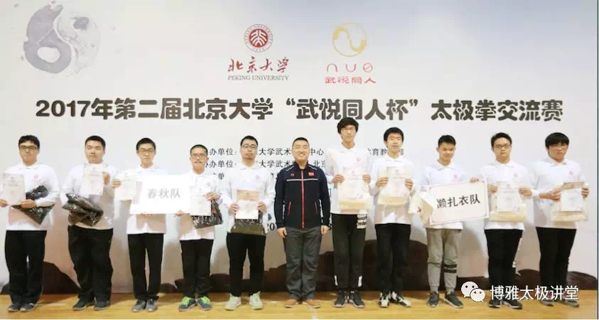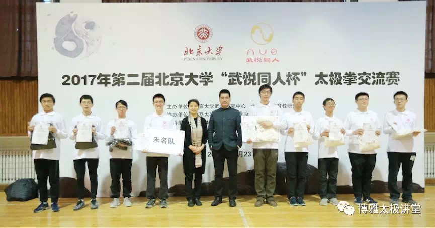2017年12月23日上午,第二届“武悦同人杯”太极拳交流赛在北京大学第一体育馆成功举行。来自北大太极拳必修课程班、武术协会、武术队的学生及北大太极拳爱好者等近150名的选手参与太极拳比赛。本次比赛由北京大学武术研究中心及北京大学体育教研部主办,北京大学武术协会及北京大学武术队协办。