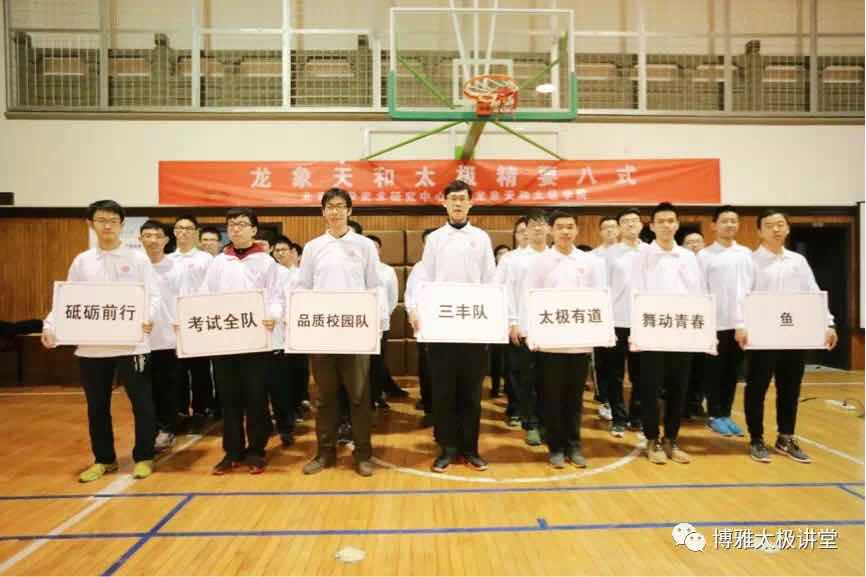 值得一提的是龙象天和太极精要八式项目,是北京大学武术研究中心创编,与龙象天和太极学院联合推出的太极拳套路,它以陈式太极拳为蓝本,创编了八个经典动作,套路短小精悍又不失全面,既方便了同学们入门练习,还能让同学们在这八个动作中体会到太极拳的沾连粘随、刚柔并济的风格和特点,一经推出便受到了广大同学的欢迎。