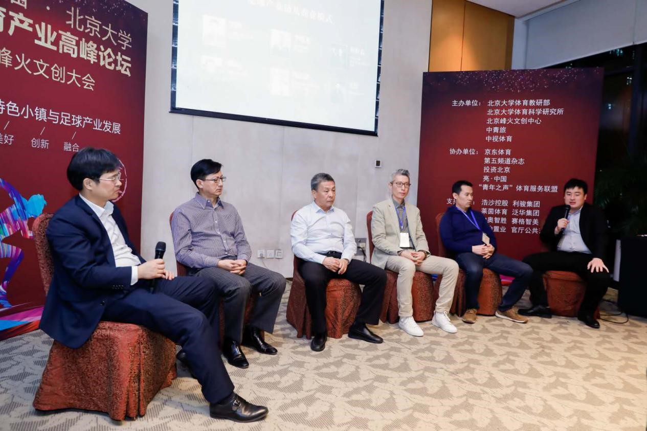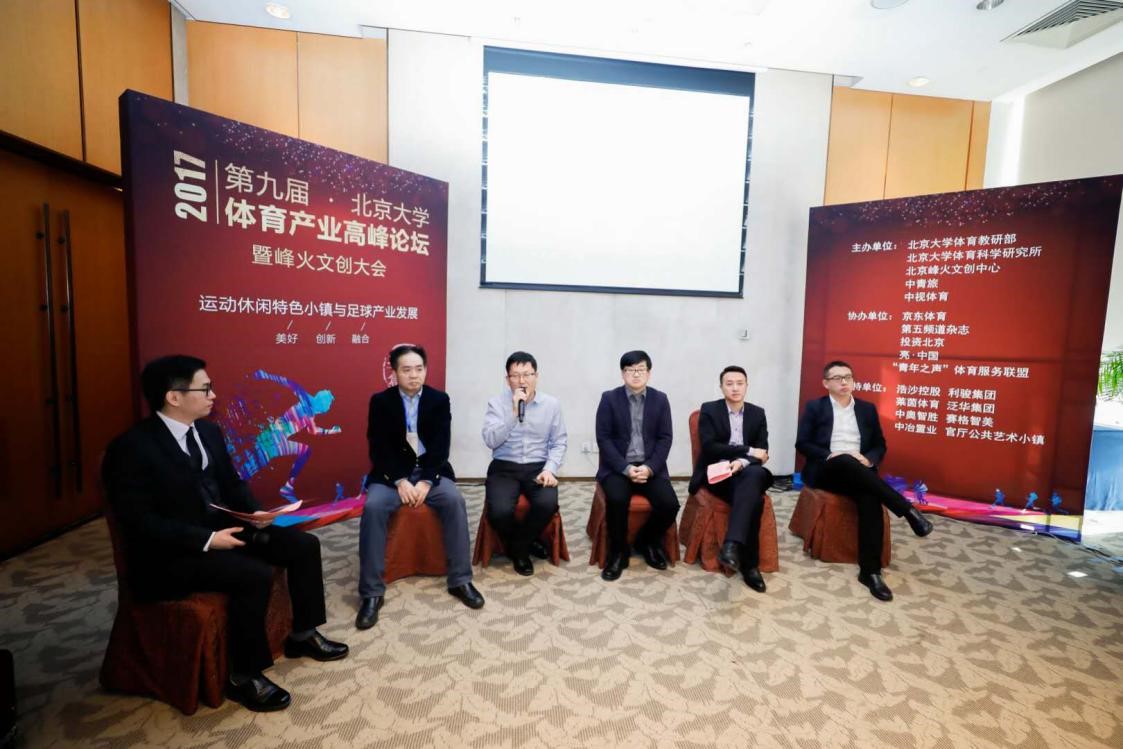“足球产业发展”的探讨环节,来自团中央“青年之声”体育服务联盟秘书长邵德海、北京中赫国安俱乐部副董事长张路、著名体育记着冉雄飞、北京合力万盛国际体育发展有限公司总经理武雪松、中体合源体育发展有限公司董事和世春、北京长石星空体育科技有限公司首席执行官吕建华和创冰科技创始人金清一分别做了主题演讲。北京大学体育教研部副主任吴昊为各位嘉宾的主题演讲进行了精彩点评。