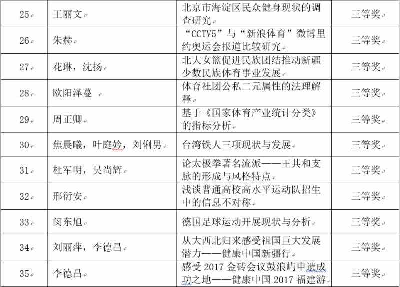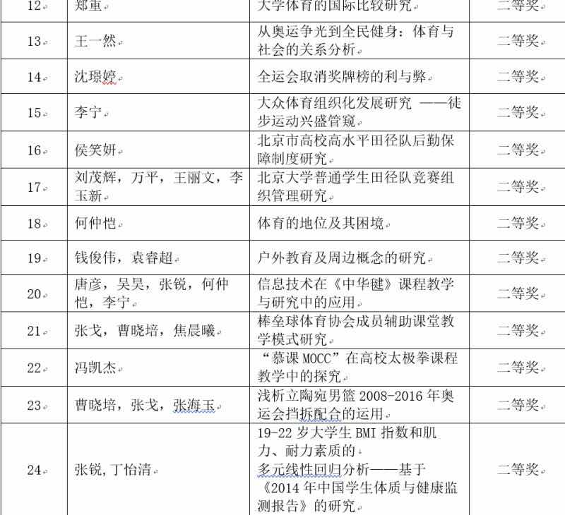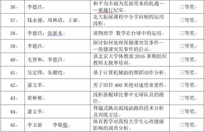 2018年北京大学体育教研部体育科学论文报告会论文获奖名单