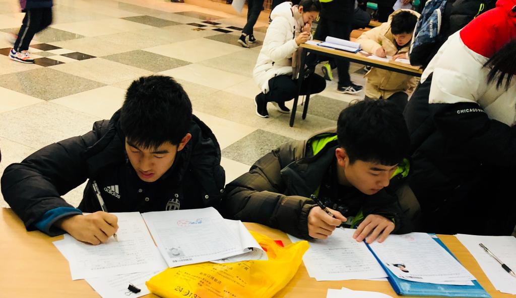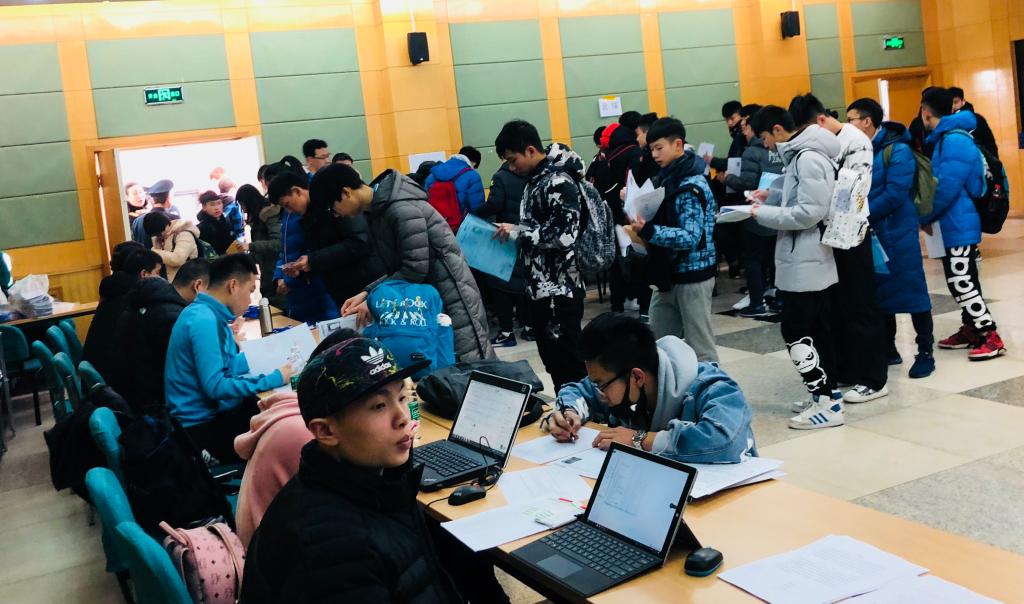 早上8点未到,已经有许多家长跟考生等候在205教室外,怀着紧张而又激动的心情翘首等待。在现场报道组的老师和同学们的引导下,考生们有序地提交了身份及成绩查验资料,填写了现场报名表,并签署了《反兴奋剂承诺书》,领取了准考证。中午1点现场报名结束后,下午部分项目还进行了文化课考试。