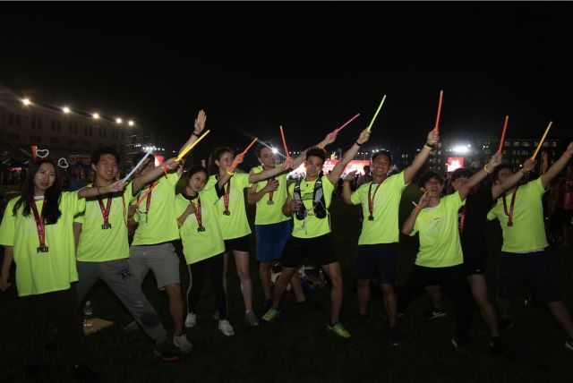 太极禅课程结束后,袁男神带领同学们进行了热身活动,同学们在出发点集合,开始了荧光夜跑,跑过五四体育场、教学区、绕过未名湖和博雅塔,在浩瀚星海下赏学校的美景,让昔日静谧的未名湖畔更多了一丝活泼,一丝生气。