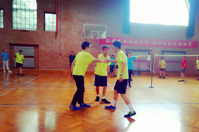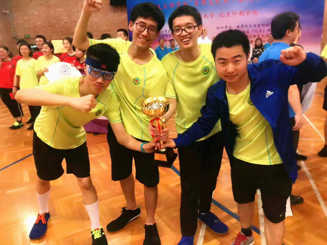男子三人毽球则是北大首次参加的项目。通过一年的踏毽进攻练习,北大毽球队有了自己的主攻手,因而有一定实力参加男子三人毽球比赛。而在比赛中,四位队员斗志昂扬,齐心协力,顽强拼搏,凭借坚韧的毅力,数次完成逆转好戏,首次参赛便一鸣惊人,力克强敌北信、民大、工商,收获第三的佳绩。