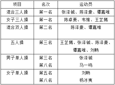 北大健美操队共派出9人参加健美操甲组高水平组6个项目的比赛,喜获以下佳绩: